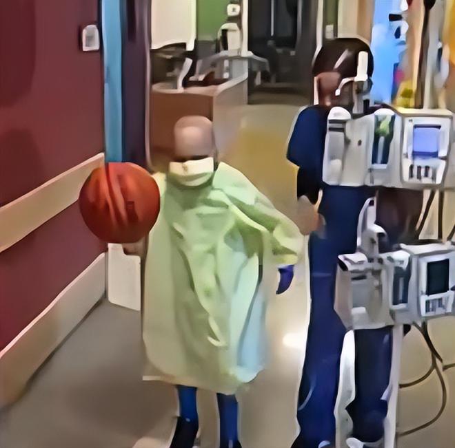 布罗迪会在治疗间隙练习运球,在病房角落放上小球框,模仿着库里投三分的姿势。